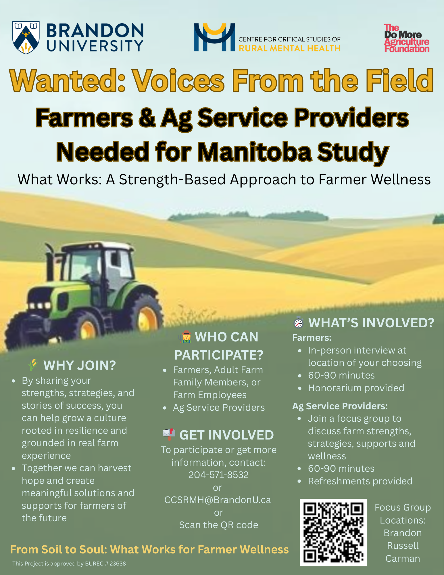Farmers & Ag Providers Needed for Manitoba Study: What Works - A Strength Based Approach to Farmer Wellness